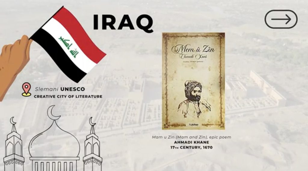 سلێمانی شانازی دەکات کە بە شاکاری کلاسیکی کوردی، (مەم و زین)ی ئەحمەدی خانی بەشداریی کردووە، کە یەکێکە لە لوتکەکانی ئەدەبیاتی کوردی و بەردی بناغەی ناسنامەی کولتوورییە لە کوردستان و ناوچەکەدا.