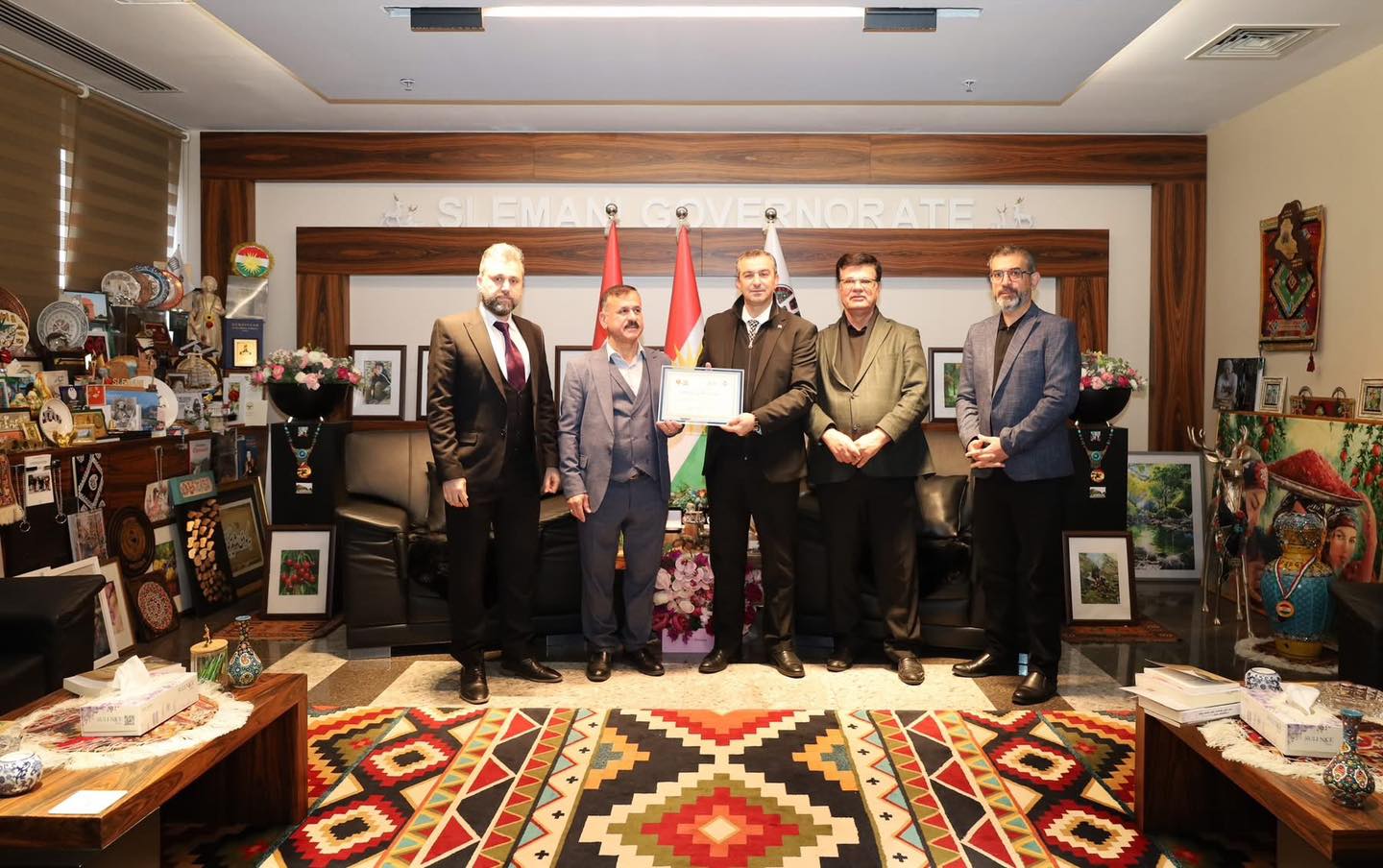 Today, Dr. Haval Abubaker, the Governor of Slemani, received a delegation from Slemani and Kurdistan representing the 17th International Badirkhan Festival, which was held in