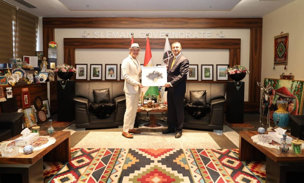 During the meeting, they discussed Mr. Bahaydn’s unique works, projects, and productions. He presented a special painting of his own to the Governor of Slemani in appreciation of his continuous support for artistic endeavors, artists, and Mr. Bahaydn’s projects both inside and outside of Kurdistan.
