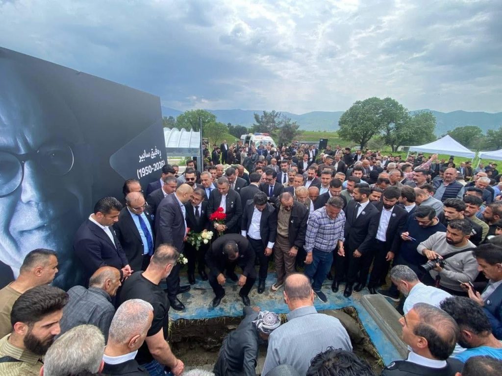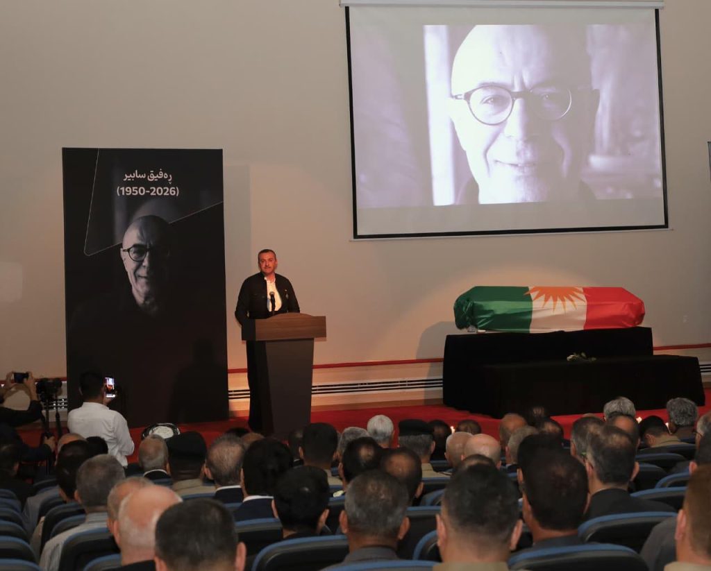 The family of the deceased presented the sacred Kurdistan flag that draped the casket of Dr. Rafiq Sabir to the representative of the Deputy Prime Minister, who in turn presented it to Dr. Haval Abubaker. The flag will be preserved in the museum of the Slemani Governorate Office as a symbol of commitment to the messages of the deceased and as a testament to the dignity and sovereignty of Kurdistan, and his noble character.