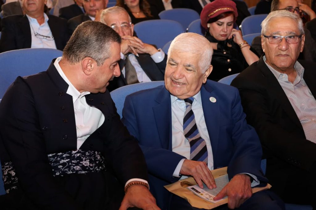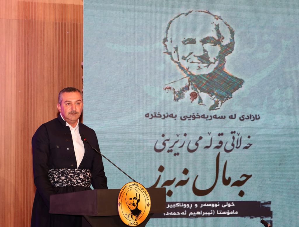 Tonight, Dr. Haval Abubaker, Governor of Slemani, participated in the Jamal Nebez Golden Pen Award ceremony in the Sharif Pasha Hall in the Slemani Governorate building, in the presence of Mrs. Shanaz Ibrahim Ahmed, the First Lady of Iraq. The award, for the novelist and intellectual Professor Ibrahim Ahmed’s session, was organized under the supervision of Mrs. Nimat Tofiq Mahmoud, by the Jamal Nebez Cultural Organization, with the support of the Governor of Slemani, Kurdsat Media Foundation, Caro Publishing, the worthy efforts of Mrs. Shanaz Jamal, and Sky Design.