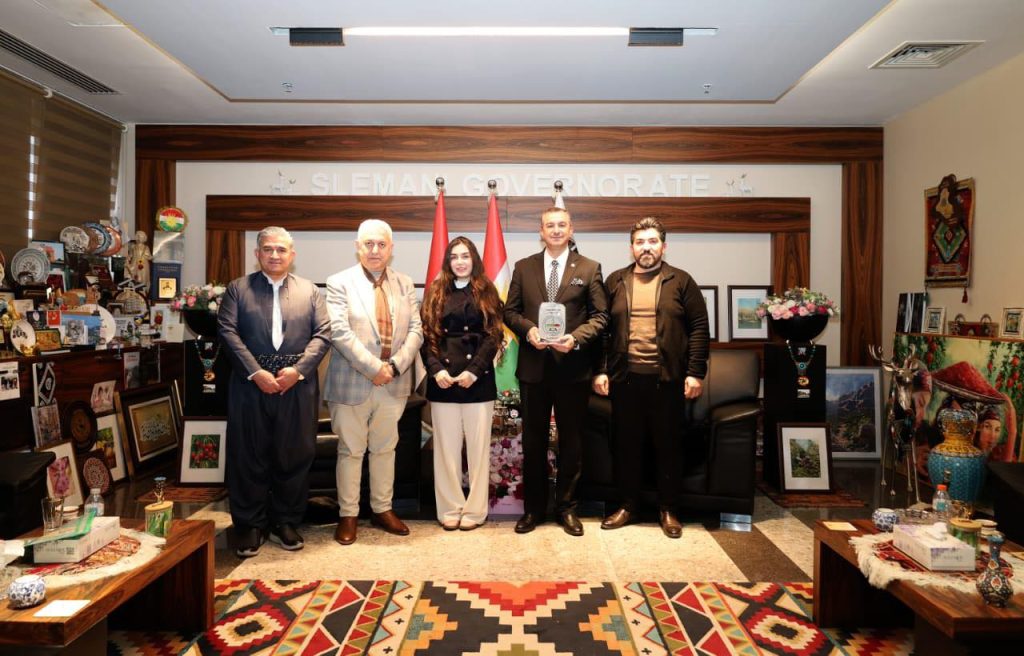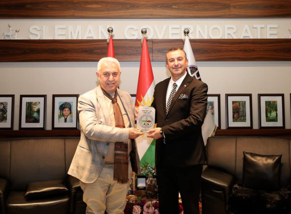 During the meeting, they discussed the artistic, literary, and cultural fields in Kurdistan and among the Kurdish diaspora. The guests presented an honorary award from the Lur Joint Center to the Governor of Slemani in appreciation of his continuous support for the arts, literature, and culture.